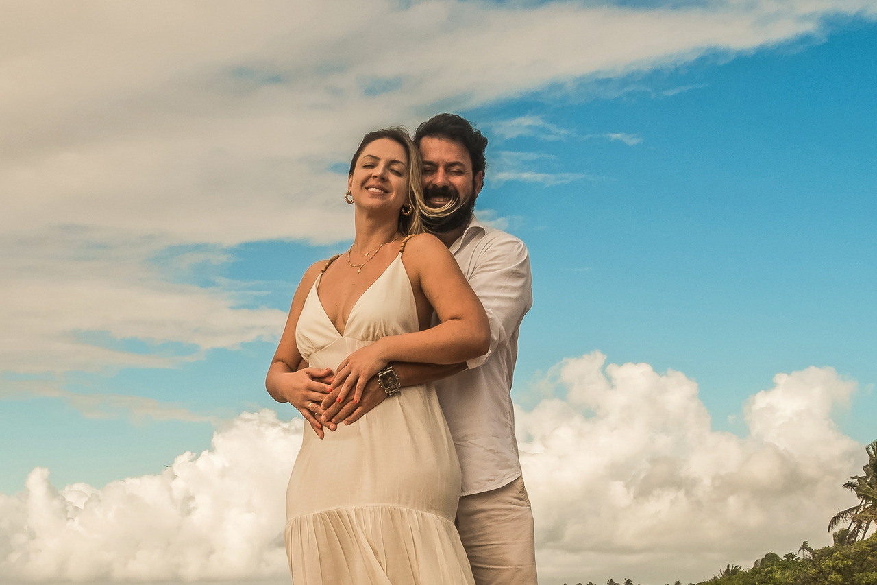 Em um ensaio de casal, ou família, não é preciso usar a mesma cor ou a mesma peça de roupa, basta combinar tons e estilos.